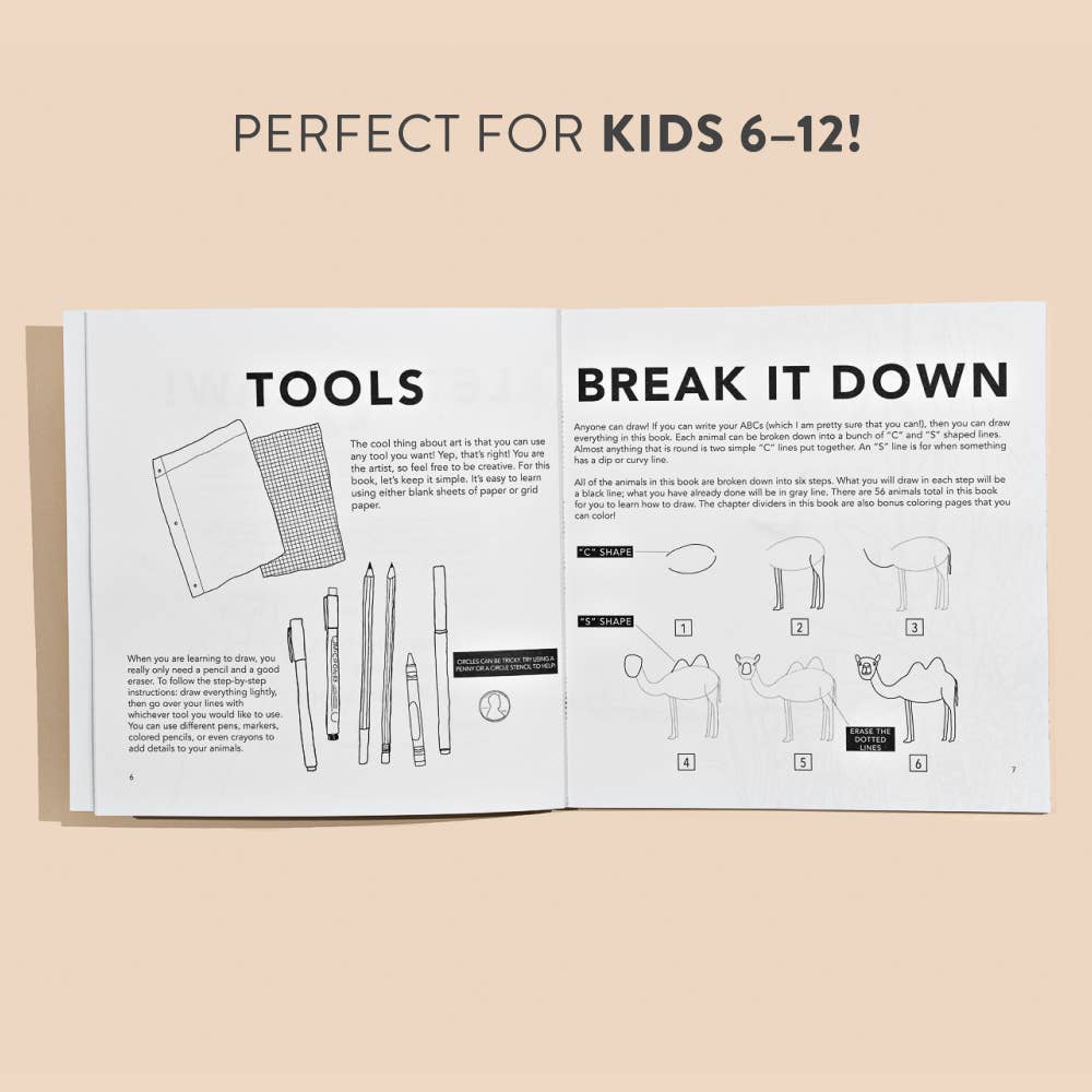 Perfect for budding artists and kids who have never drawn before, this beginner drawing book will teach your kid how to draw their favorite animals in no time! Author and professional artist Alli Koch's kid-friendly mini drawing lessons will help your child practice their basic art skills and teach them how to draw with confidence. This book is perfect for kids 7-12, but kids as young as 5 with an interest in art will be able to easily follow along as well.
