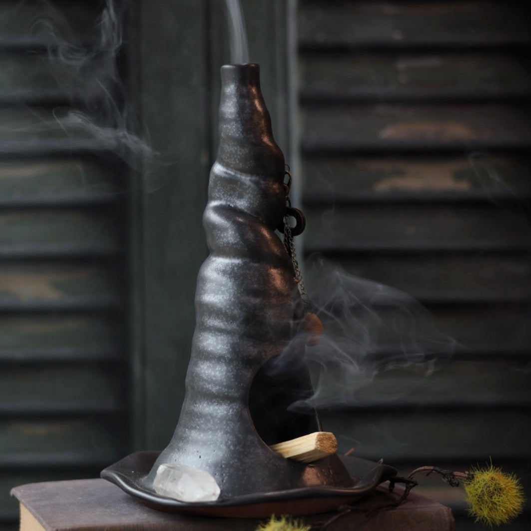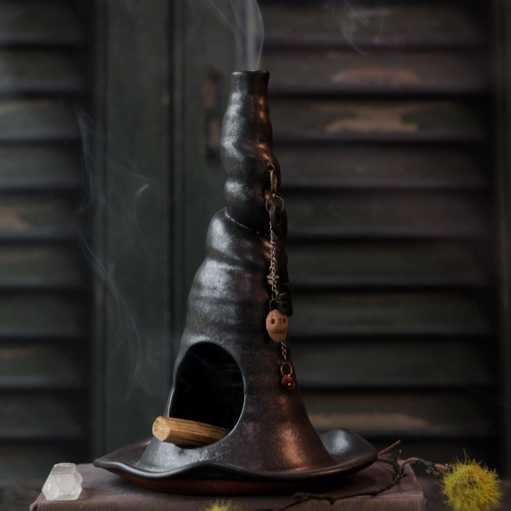 Black Witch Hat Incense Burner XL | Handmade for Halloween