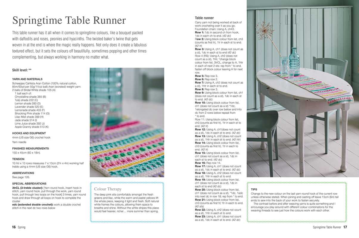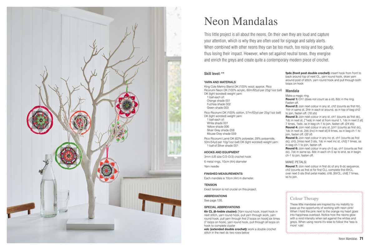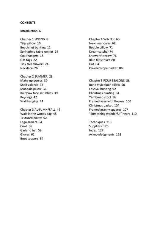 There is a chapter for each season, to reflect the colours of nature in spring, summer, fall, and winter, and then a chapter of "four seasons" designs, showing you how to mix shades from different times of the year. With notes on the color therapy benefits of crafting and working with color