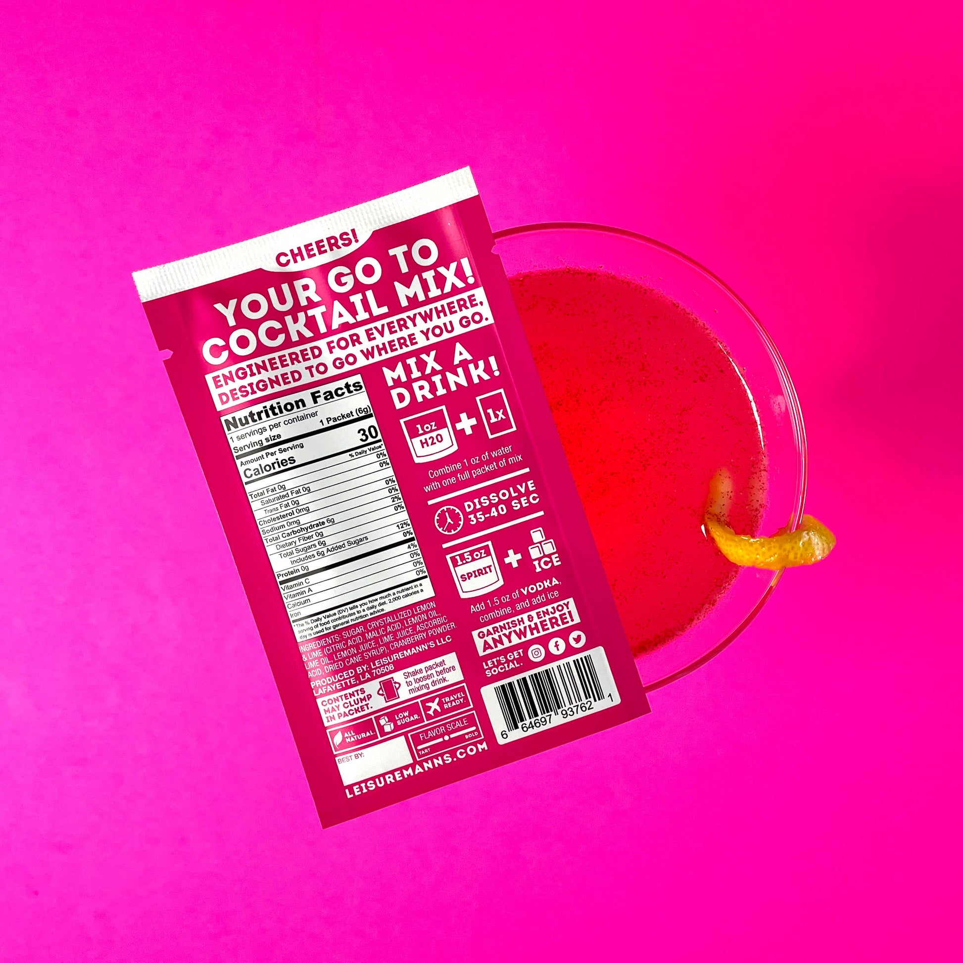 - MIXING 101: 1 Pack of Cosmo Mix + 1 oz H20 + 1.5 oz Spirit (Vodka) NET WT. 0.21oz (6g) = Approximately 1 cocktails per pack