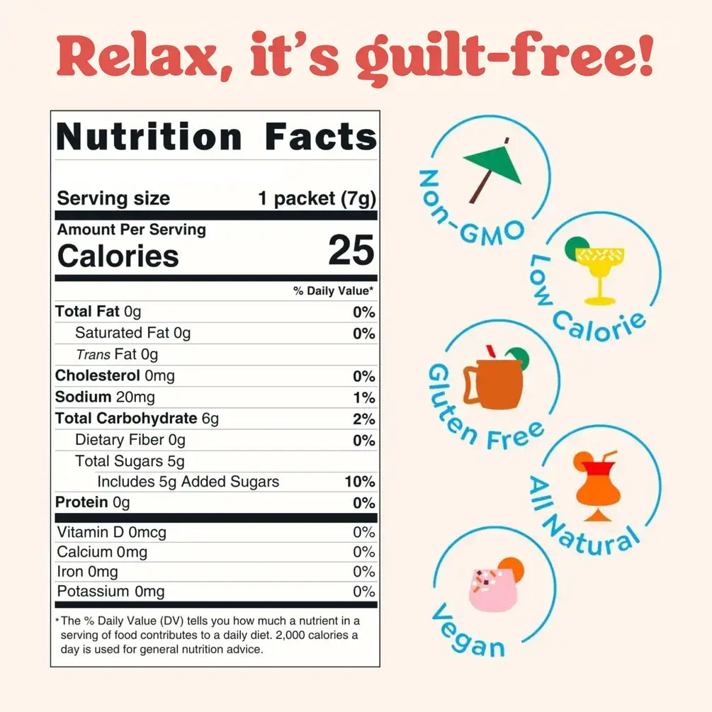 Ingredients: Fructose, citric acid, vegetable juice (for color), natural flavor, sodium citrate, stevia leaf extract.