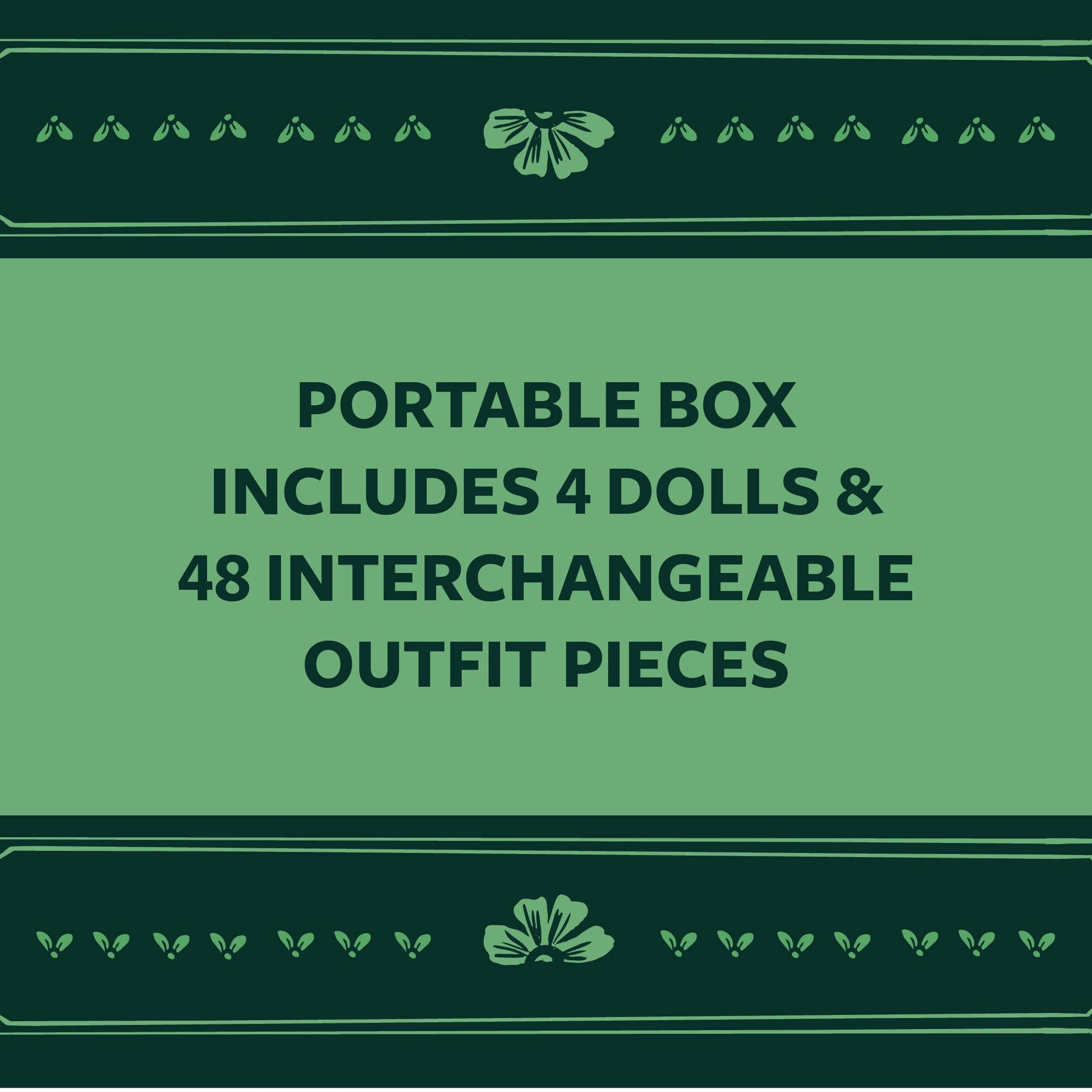 The stylish separates include artfully illustrated gorpcore jackets, botanical print robes, dapper suits, couture capelets, and more. Each daring ensemble fits all four dolls and can be paired with accessories, shoes, hats, wigs, purses, and pet dogs to complete the look. Dress these dolls to express your funkiest fashion fantasies!
