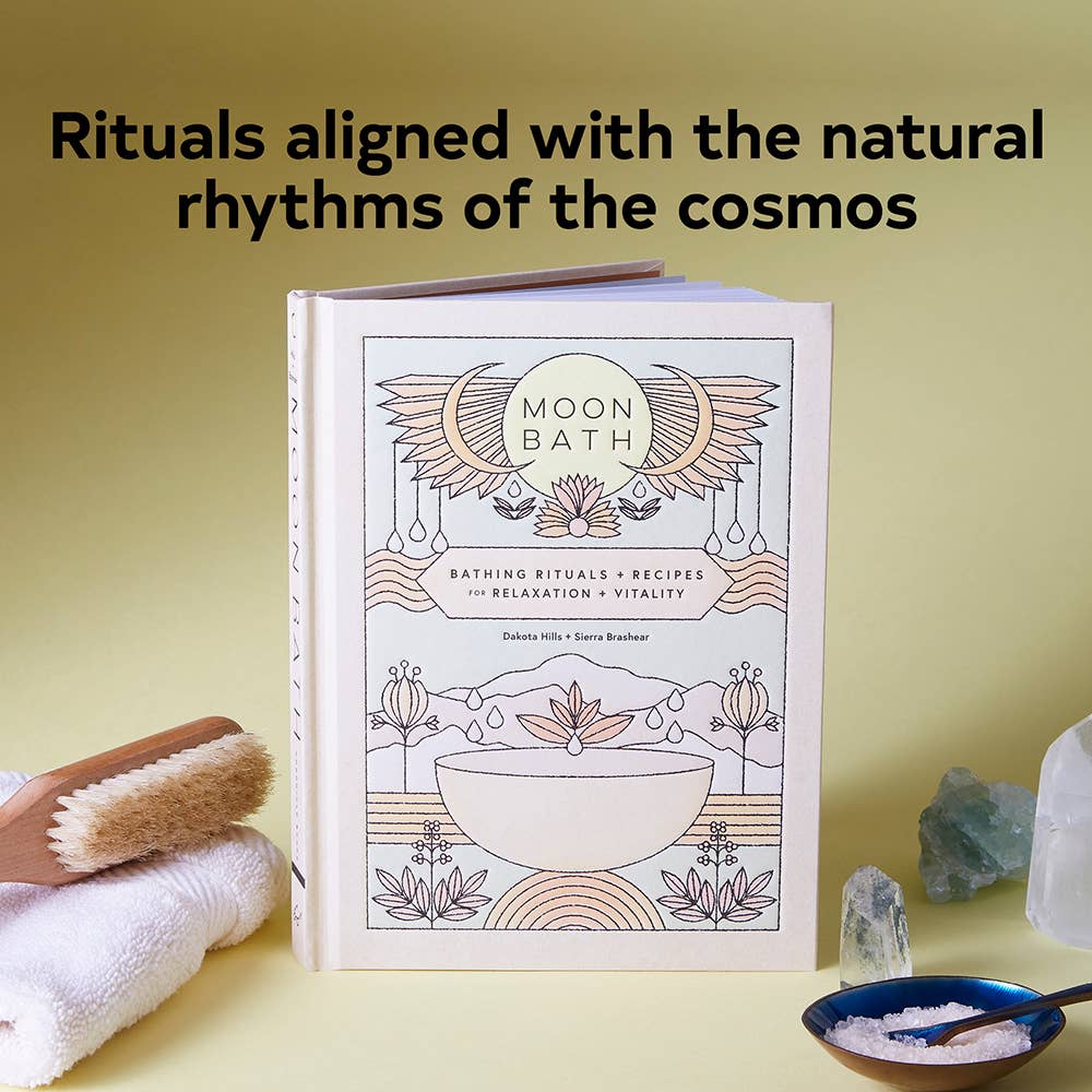 This transformative book features 16 bath and shower rituals aligned with the lunar cycles and the natural rhythms of the cosmos. Organized by moon cycle—New Moon, Waxing Moon, Full Moon, and Waning Moon—each ritual includes a bath recipe featuring healing natural ingredients.