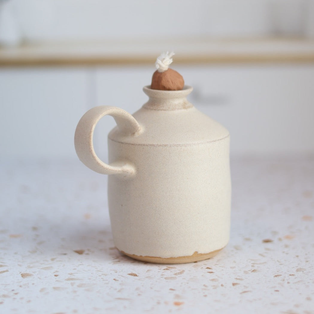 Set the mood indoors when you use regular lamp oil or enjoy a bug free time outdoors when you fill the handmade matte cream ceramic oil lamp with citronella oil.