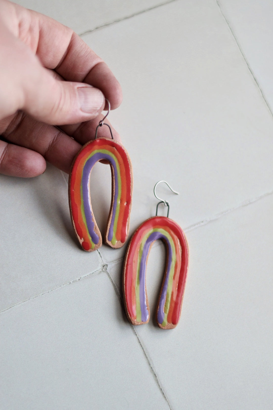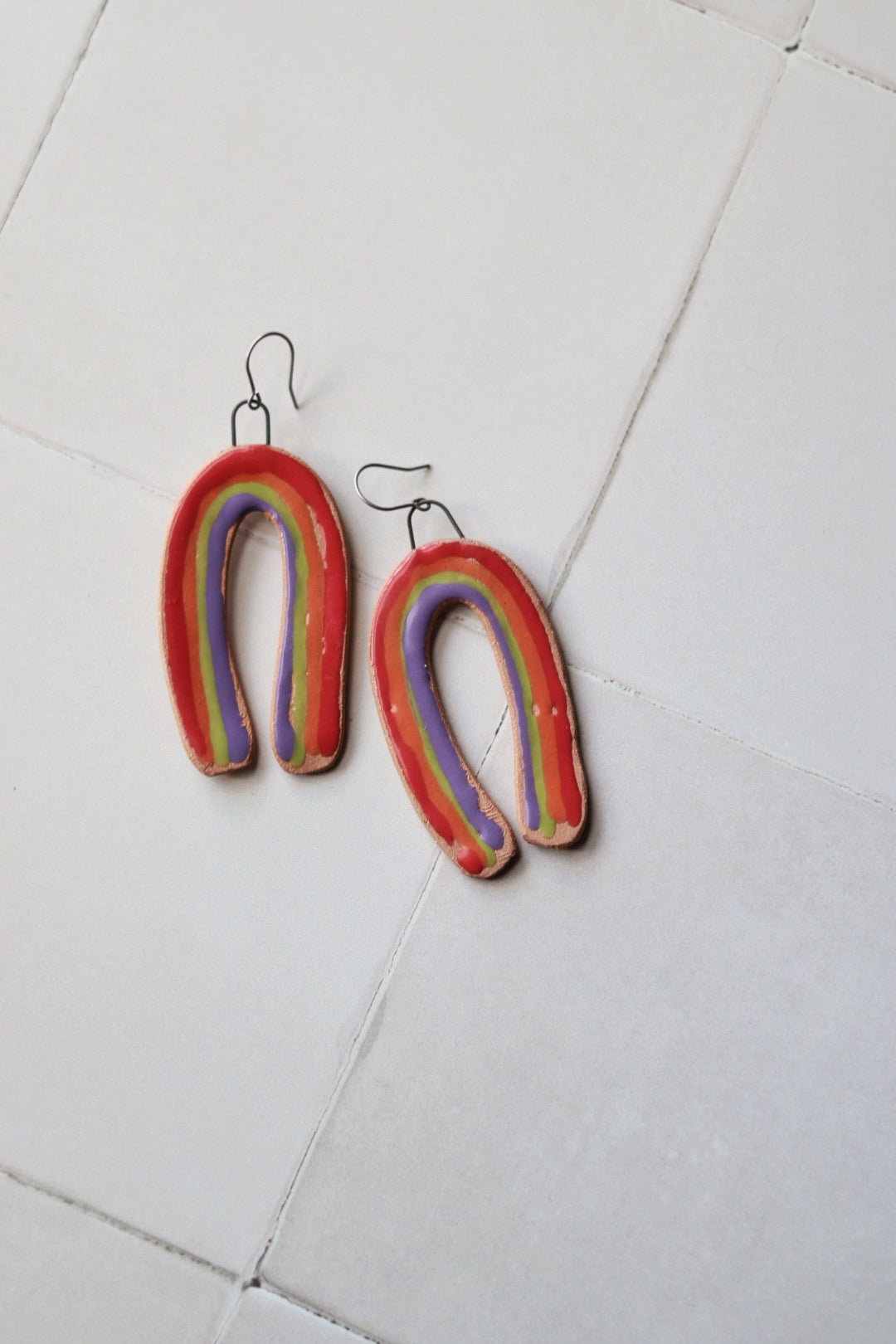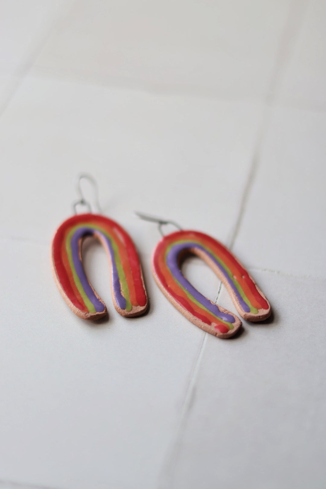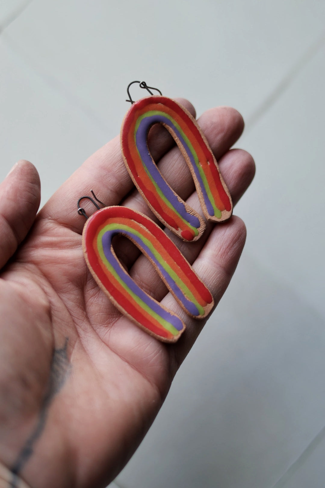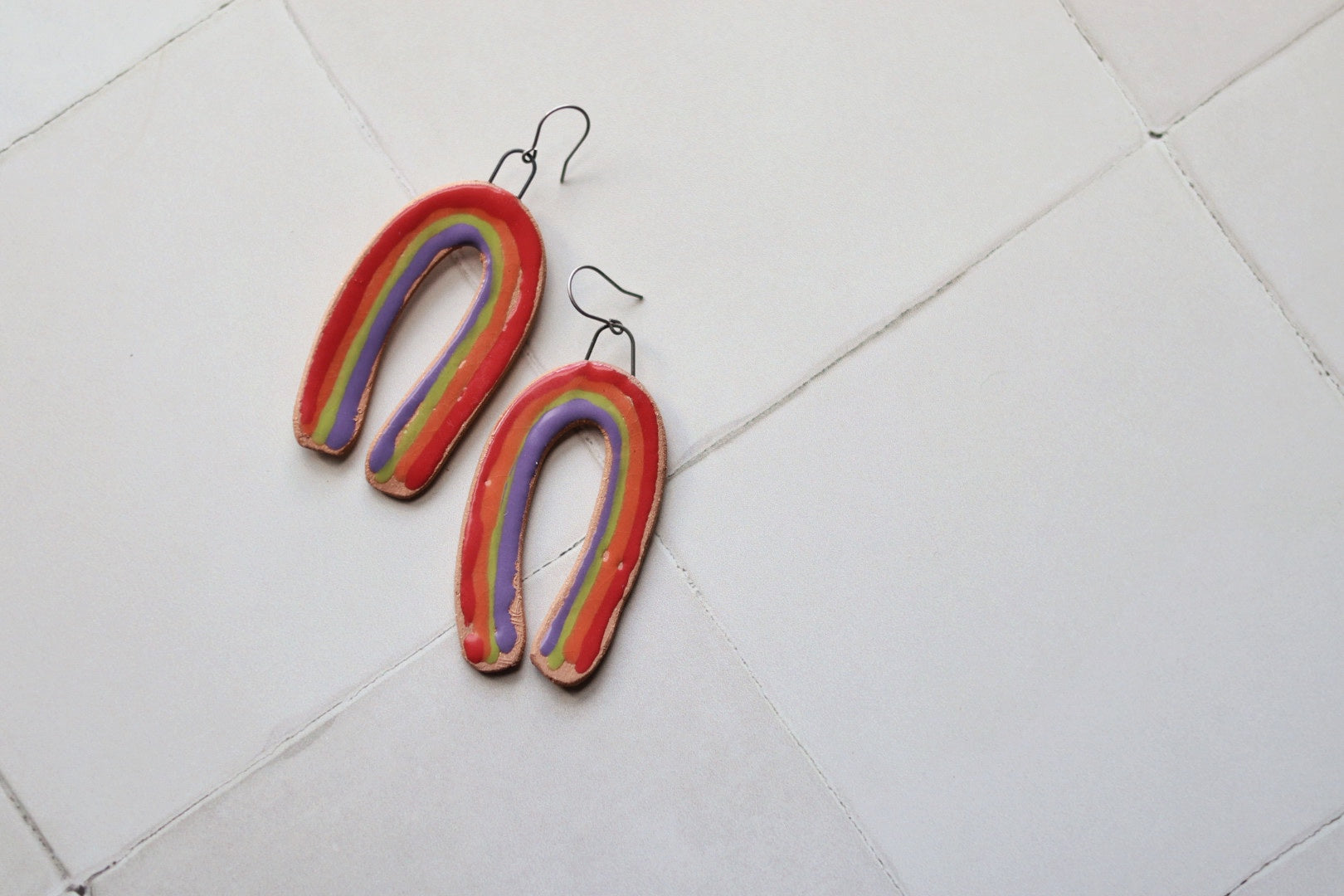 Show your pride! The rustic rainbow bold earrings are the perfect finishing touch for any casual outfit.