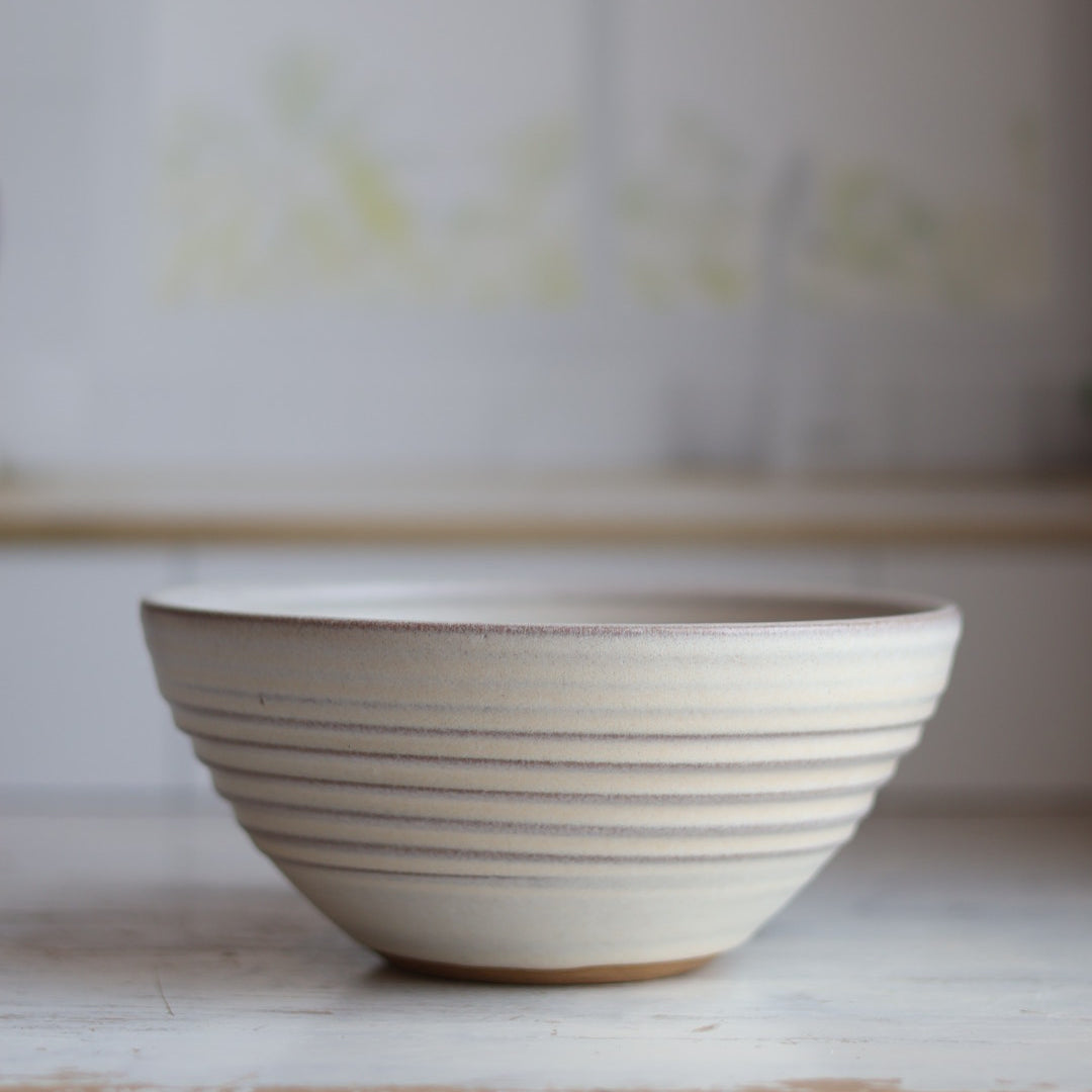 Our Cream Serving Bowl brings a touch of handmade magic to your table with its generous 7.5" diameter and 3.5" height – perfect for family-style pasta, your famous salad, or that roasted veggie side that always gets demolished first.