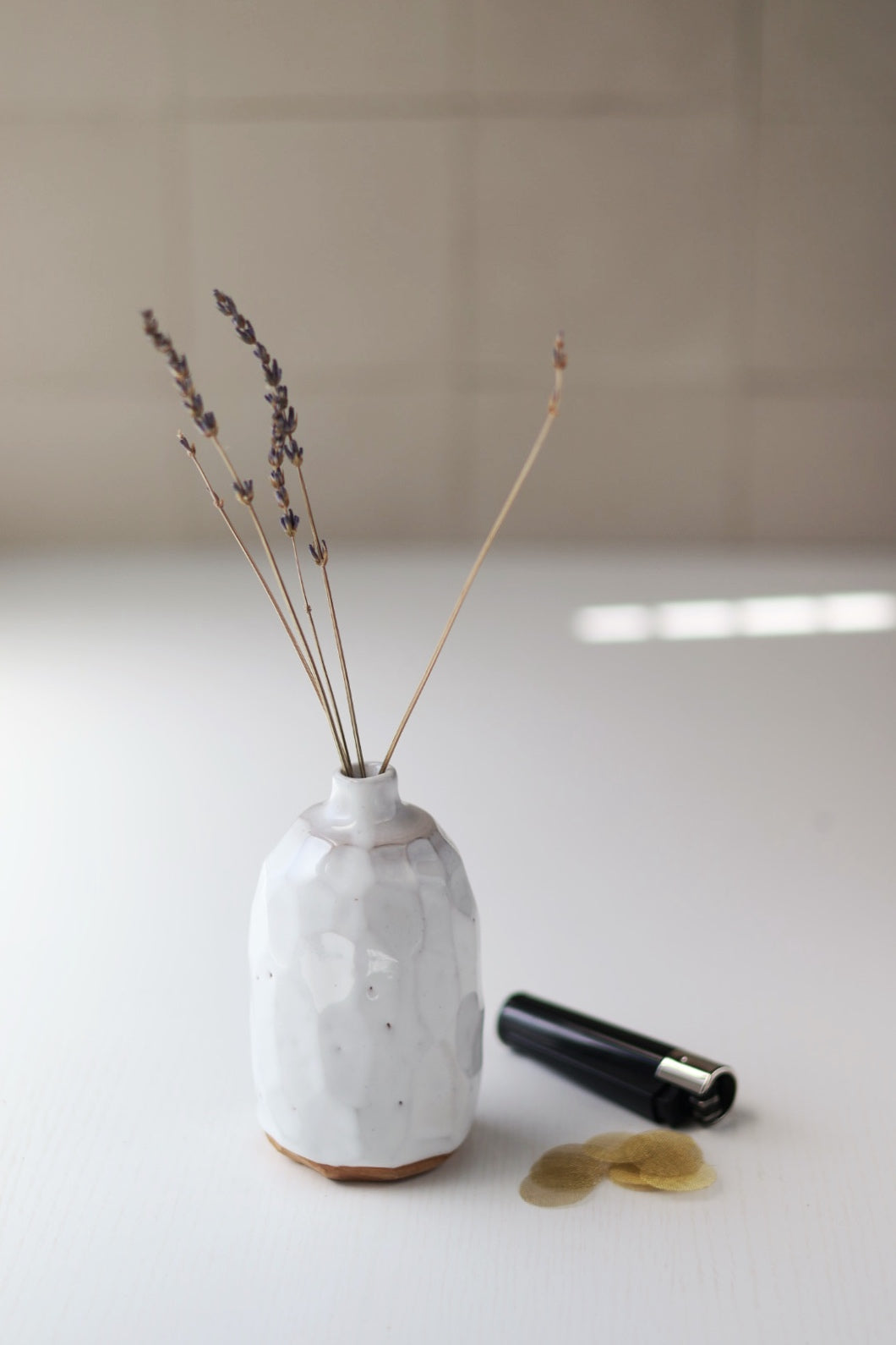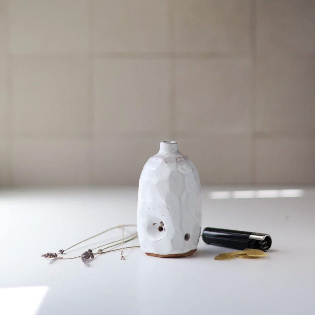 The set includes a one of a kind handmade Ruse Bud Vase, refillable Clipper lighter, pipe cleaner, screens and a few sprigs of dried lavender to complete the whole vase ruse tidily packed in a black giftable box.