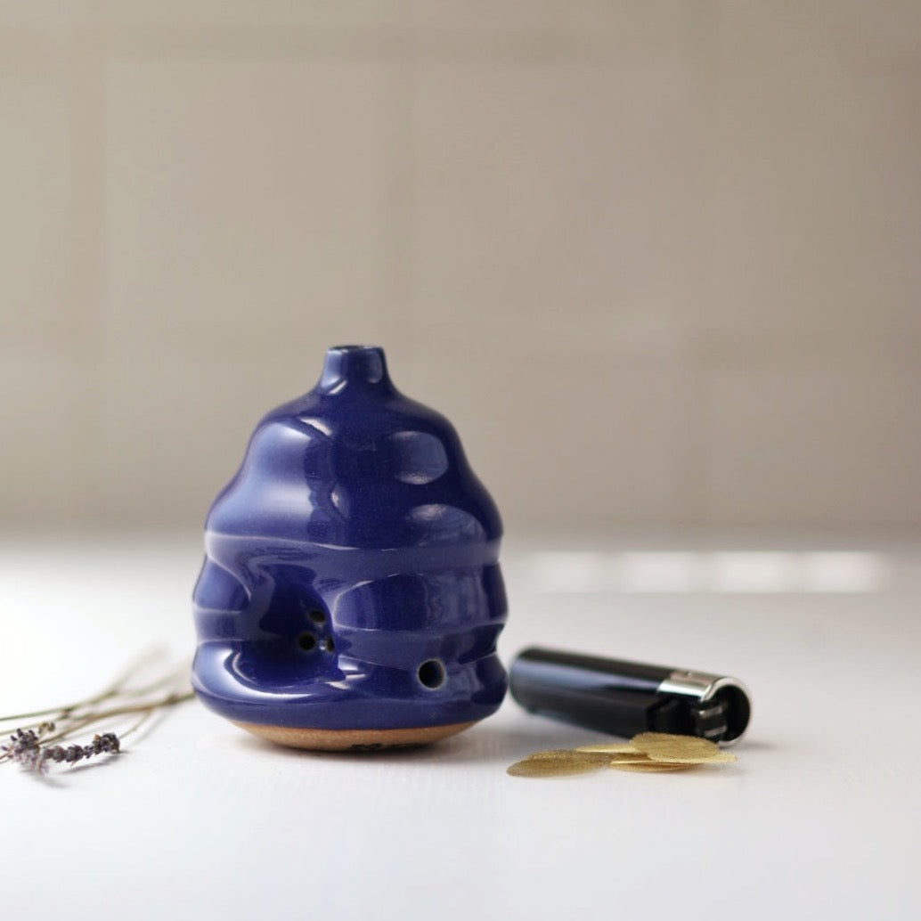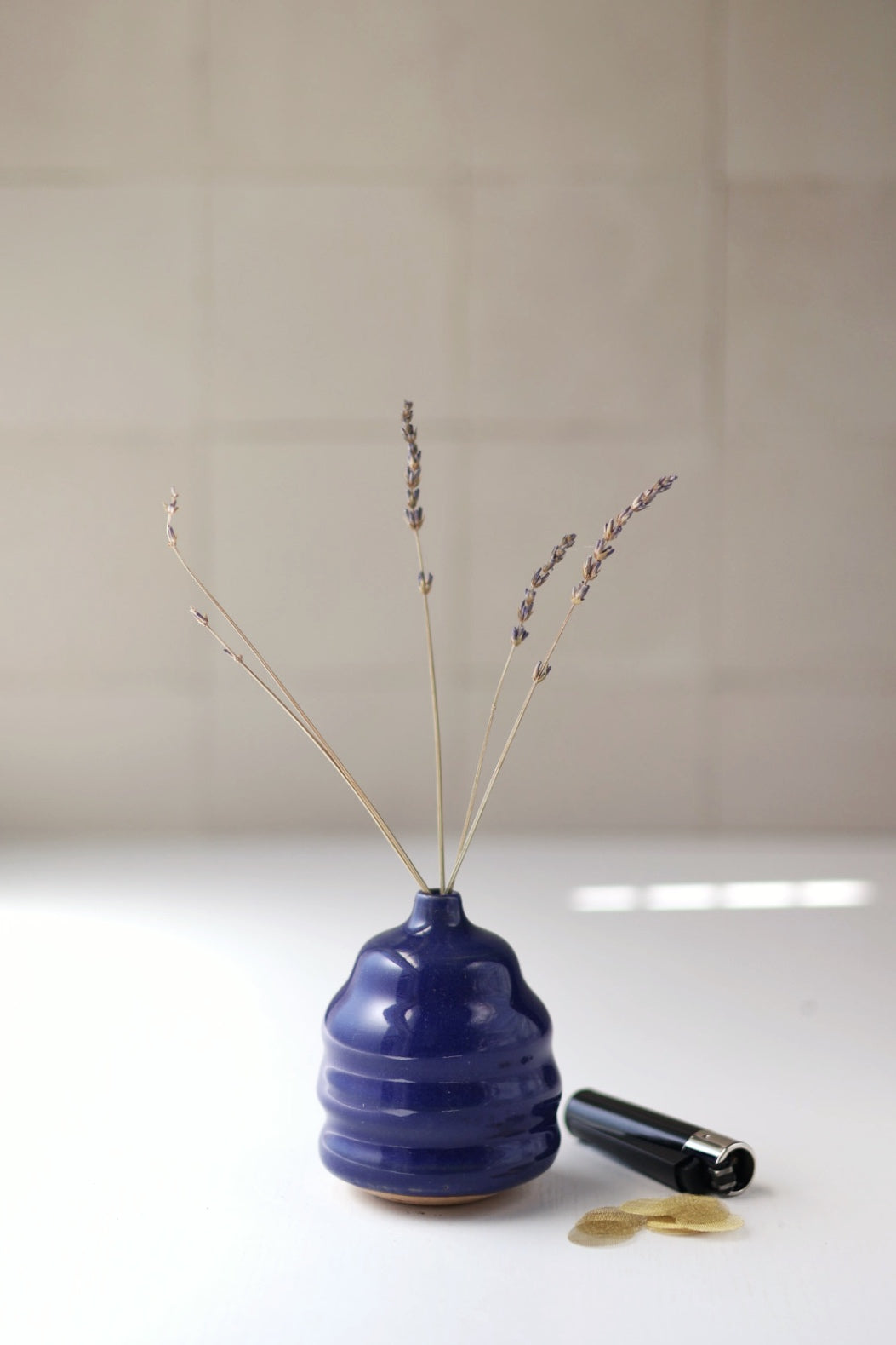 The set includes a one of a kind handmade Ruse Bud Vase, refillable Clipper lighter, pipe cleaner, screens and a few sprigs of dried lavender to complete the whole vase ruse tidily packed in a black giftable box.