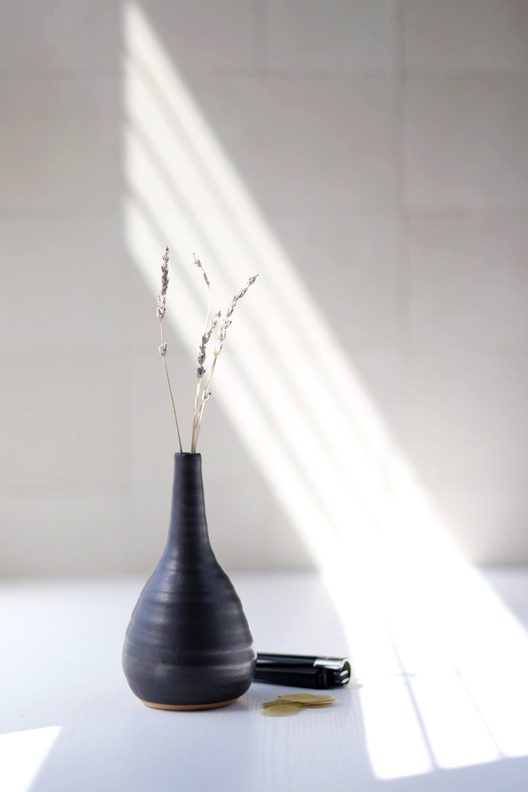 The set includes a one of a kind handmade Ruse Bud Vase, refillable Clipper lighter, pipe cleaner, screens and a few sprigs of dried lavender to complete the whole vase ruse tidily packed in a black giftable box.