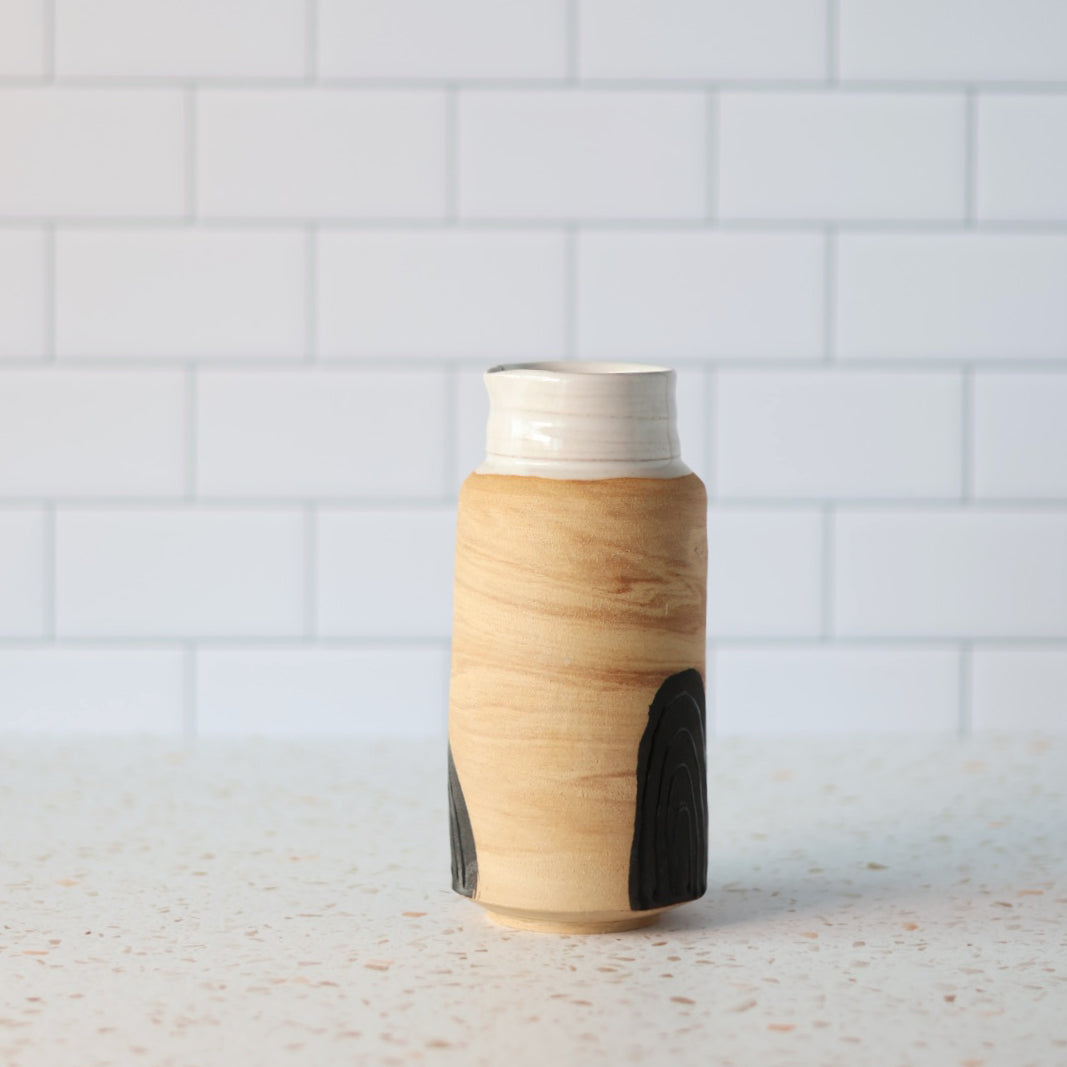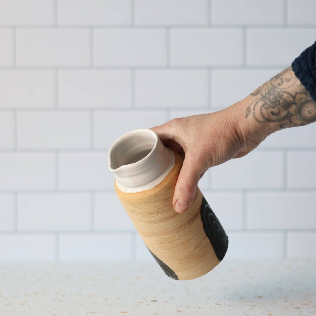 Embracing feminine strength and the power to shift from one identity to another, the Transformation water carafe is a one of a kind wheel thrown pottery vessel hand decorated with slip and overglaze. The interior is fully glazed to hold water. We recommend pairing it with our Anytime cup or Everyday Tumbler for a transformative bedside hydration experience.