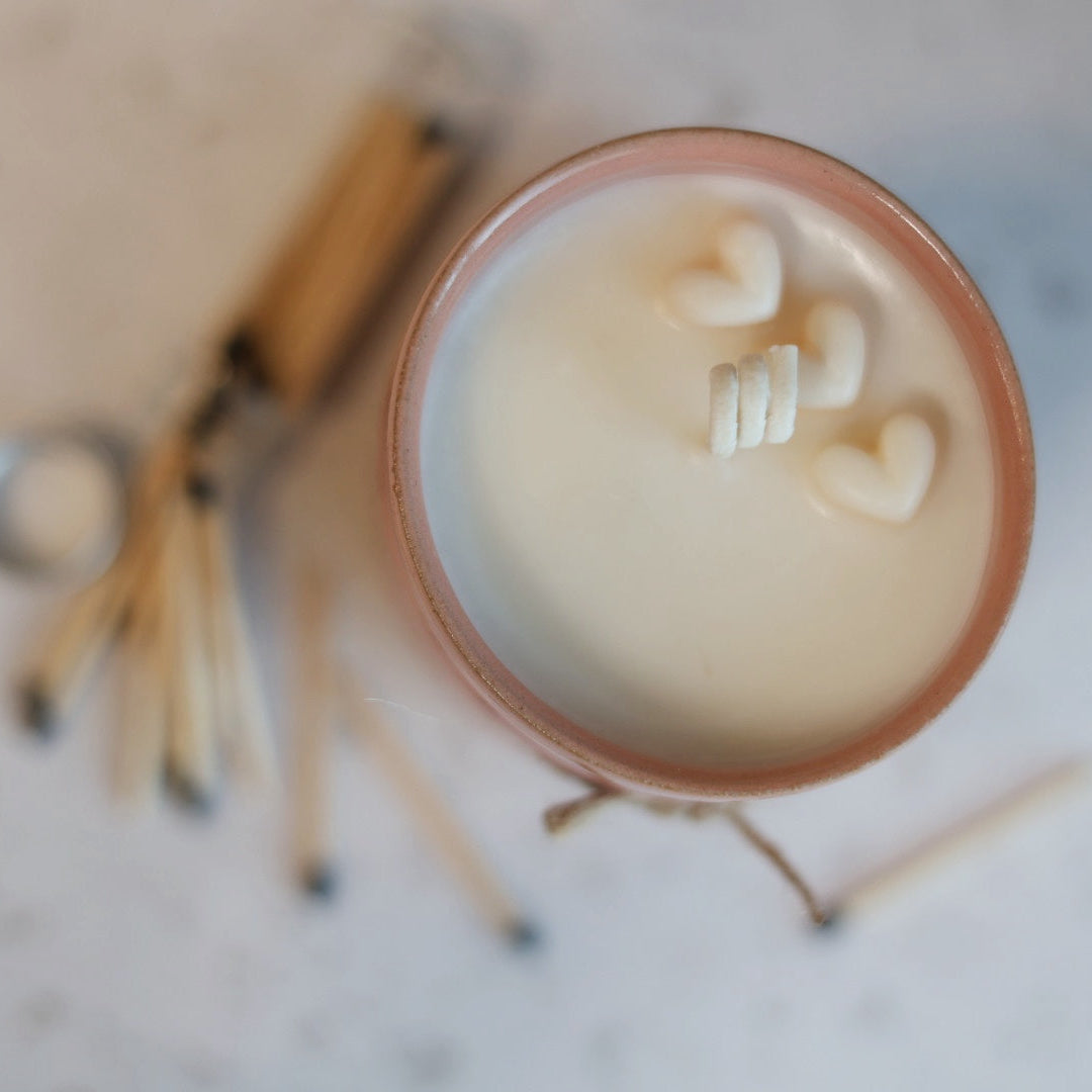 Limited edition. Pink wheel thrown container from our studio. When the candle’s done, the pot stays. Keep it. It’s yours. You made it this far.