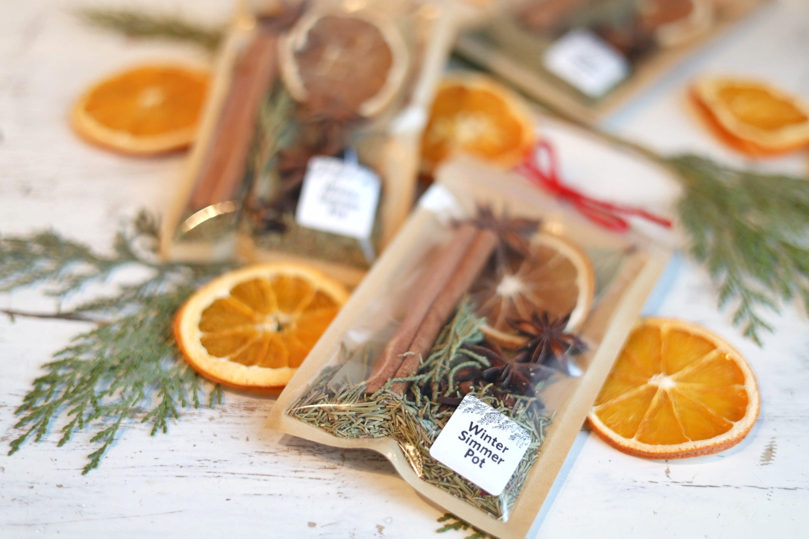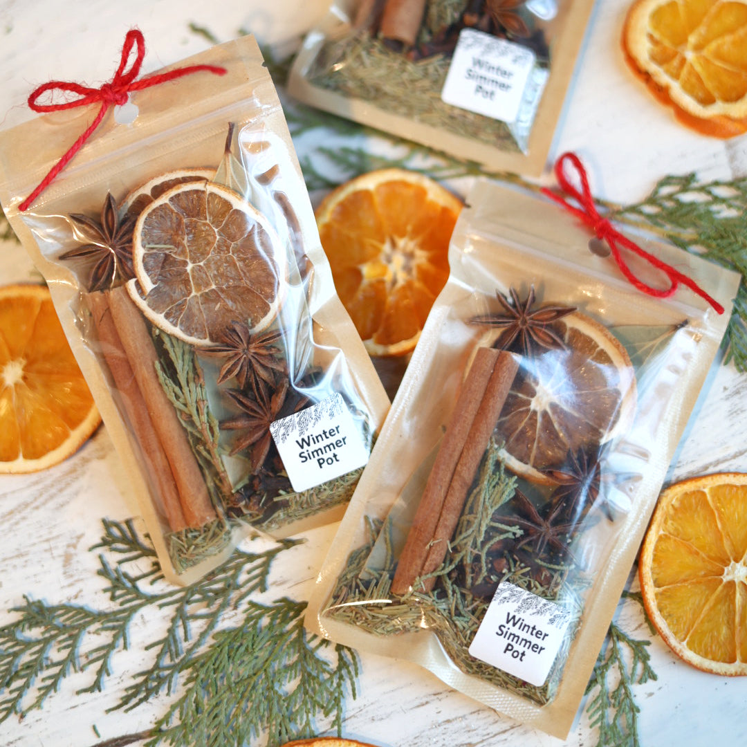 There’s a kind of magic that happens when scent fills a home—like memories putting on their coats and coming back for a visit. This winter simmer pot kit is that kind of magic in a paper packet. Inside, you’ll find dried orange for joy, cinnamon for warmth, clove for protection, star anise for clarity, rosemary for remembrance, bay leaf for good fortune, and cedar to clear out the old energy so the new year can find its way in.